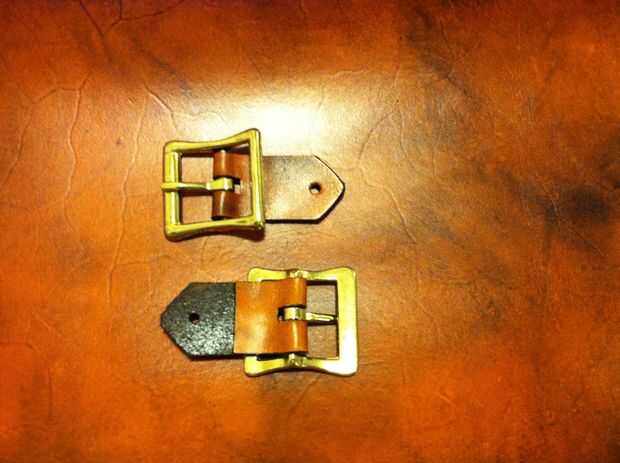-Tomando sus correas de la hebilla y correas lengua remache en sus piezas
