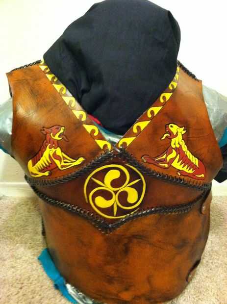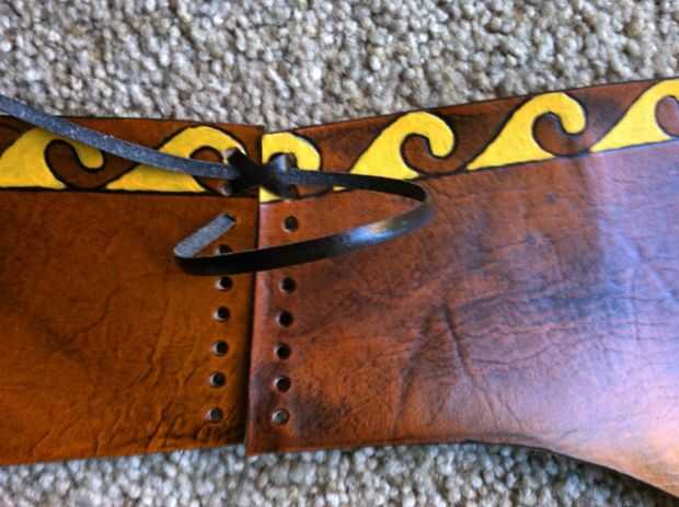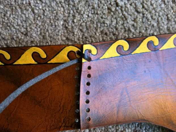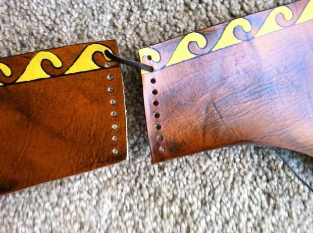 -A partir de la parte de atrás, sube a través del orificio: izquierda, 1. salir de exceso que se coserán en la puntada para que no tire