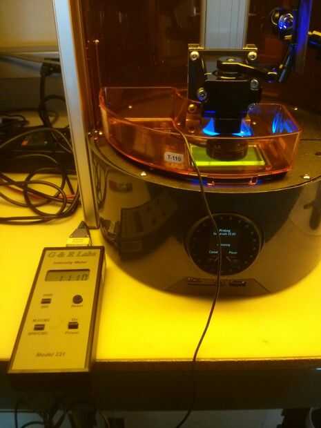 La forma más fácil para tener en cuenta para este cambio es para medir la intensidad de la luz de la impresora y luego, ajustar el tiempo de exposición, por lo que la dosis (cantidad total de luz recibida) es la misma día a día. Es decir