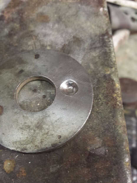 Usando la broca más pequeña, taladro en la pieza de acero a una profundidad un poco menor que el espesor de la cabeza del remache. A menos que usted rompe el micrómetro, tienes la profundidad de la globo ocular. No se preocupe si usted perfora muy profundo, puedes probar un lugar diferente en la misma pieza de acero si es necesario. A continuación utilice la punta de medio tamaño para ampliar el agujero ligeramente, pero no perfore a la profundidad mismo. Por último, hacer lo mismo con la broca más grande, ensanchar el agujero, pero no haga tan profundamente como los anteriores. Una vez haya utilizado la broca más grande, coloque la cabeza de un remache en el hoyuelo y verifique que la cabeza del remache es ligeramente por encima de la superficie plana de su yunque. No se sabe si o cómo la cabeza del remache se distorsionará hasta utiliza el yunque para establecer un remache. Puede que desee probar un remache o dos trozos de metal antes de saltar en las instrucciones de colgante.