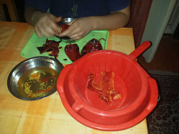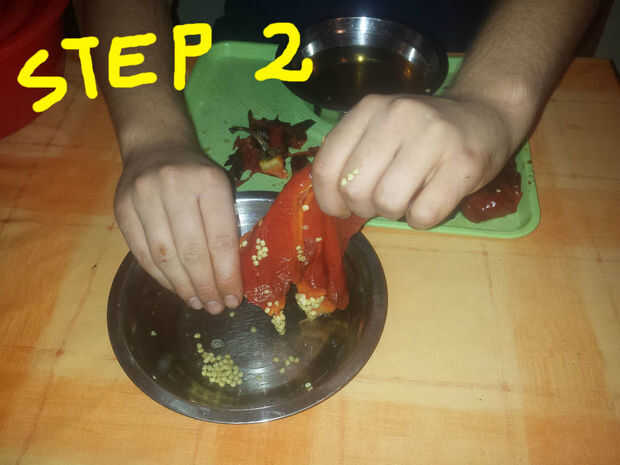 Repita todos los pasos anteriores hasta que los pimientos estén limpios y luego pasar al paso siguiente.