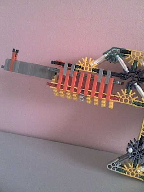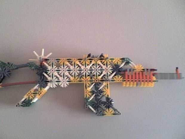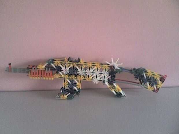 este arma es una pistola de 8 banda de goma tiro semiautomático con un giro, su hecho totalmente de K'NEX!!!!!! Cuando lo piensas bien es un muy simple mechinism, me topé con él mientras estaba tratando de disminuir el índice del fuego de un arma tot