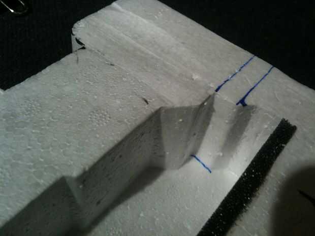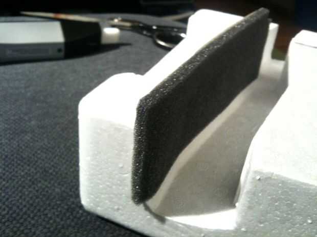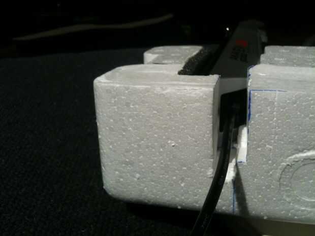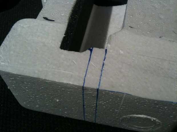 Ahora cortar unas tiras de la espuma adhesiva de 1/4" y pegarlo a un lado de la parte interior o la espuma de embalaje.