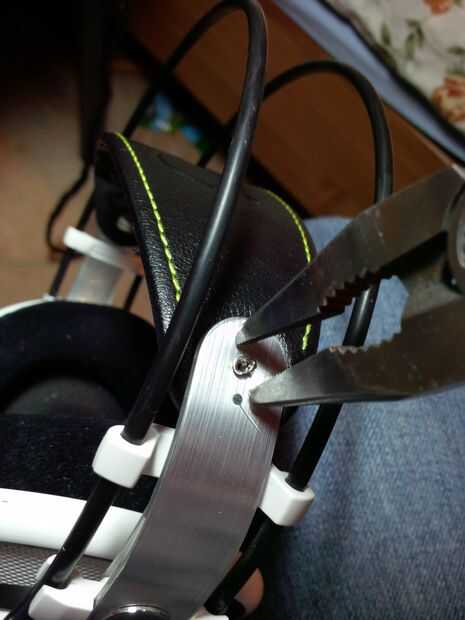 2. después de retirar las placas, usted debe ahora afrontar un remache. Esto se puede quitar si tu alicate y pellizque la parte superior del remache con el fin de hacer la parte superior más pequeña. Usted tendrá que aplicar mucha fuerza al pellizcar los remaches ya que están hechas de metal y son muy dificiles de eliminar. Cambiar la dirección de pellizcos.