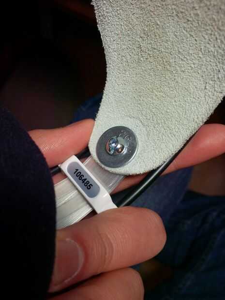 1. Coloque una arandela en el perno antes de insertar en la banda de cuero y sujetadores plásticos. Tornillo con el destornillador si es necesario.