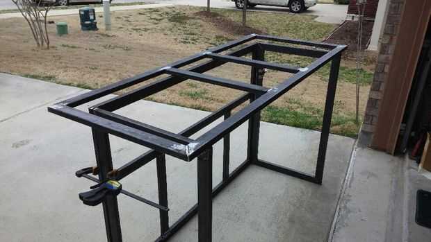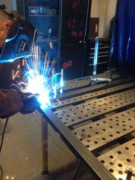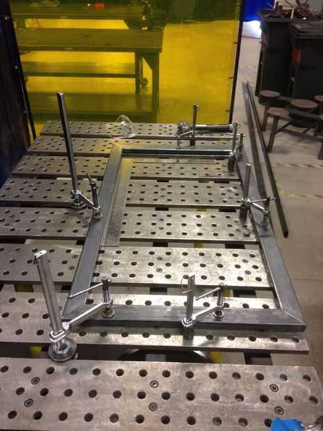 Una vez que todas las barras se cortaron, me limpió la tubería acero aceitosa con algún desengrasante y luego los llevó a la mesa de soldadura.