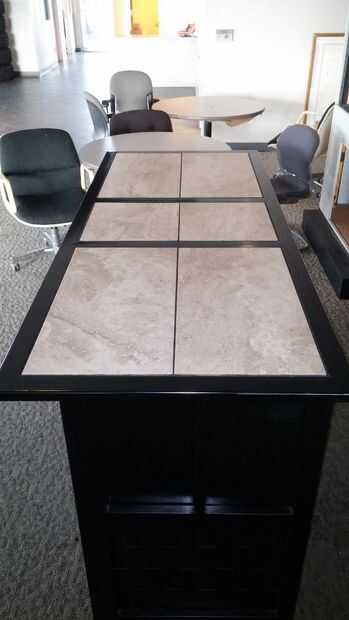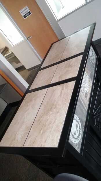 Después de pintar el marco de acero de la barra superior, luego puse mi azulejo seleccionado en las aberturas.