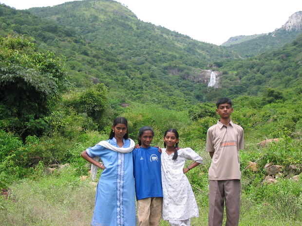 Las cascadas se pueden ver en el fondo es hogar de muchos animales salvajes como elefantes salvajes. Así, los niños tenían para contenerse y no vagar en la selva profunda. También hicimos suficiente agua, unos bocadillos para los niños y un botiquín de primeros auxilios.