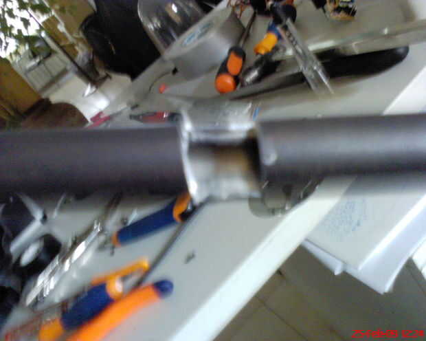 Tienes que tener cuidado de no cortar la parte donde se apriete el tornillo de montaje del brazo de la. ,(See photo) una vez cortado tienes que presentar o esmerilar los bordes hasta los brazos de montaje puede deslizar sobre el agujero otra vez.
