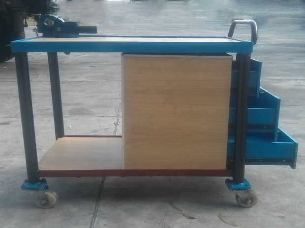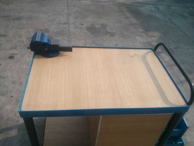 Después de finalizado todos los trabajos de soldadura preparar para la instalación de laminados elija laminado espesor 1mm porque es duro y tiene buen acabado superficial para trabajar el metal. Después de suelde soldadura fuerte base de mordaza y tornillo de banco de montaje en base después de que capa pintura final con un toque hacia arriba y con mi etiqueta engomada de Dios se ve muy bien.