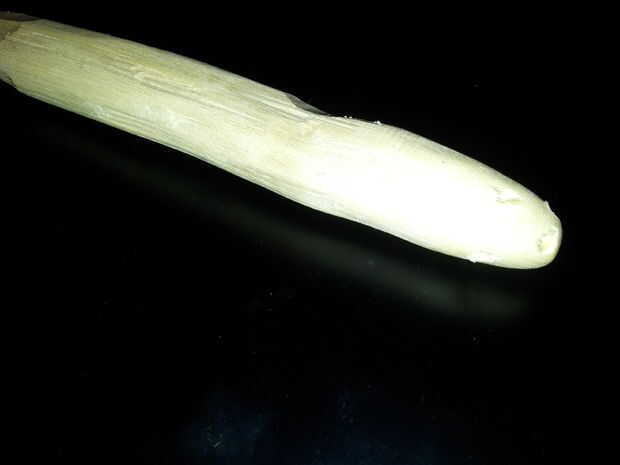 Usando su cuchillo, quitar la corteza y reducir la sección transversal de la media luna a un cilindro luego redondear cada extremo.