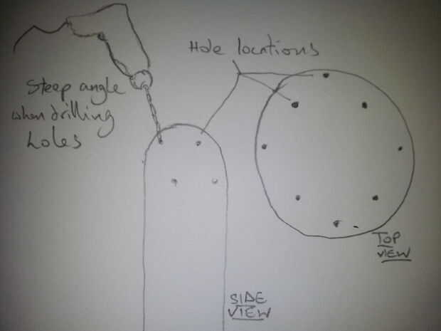 Cuidadosamente le Taladre los orificios en un ángulo pronunciado, usando una broca de madera de 3mm. Cada agujero a una profundidad de unos 7 u 8 mm