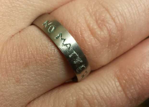 La historia detrás de este anillo es que mi hijo mayor es super bueno en sí mismo meterse en problemas. Como tal, que con frecuencia se está "conversaciones" de sus padres. A menudo comienza a sentirse muy mal acerca de sí mismo. Mi esposa y yo regularmente le recuerdan "siempre amaré pase lo que pase."