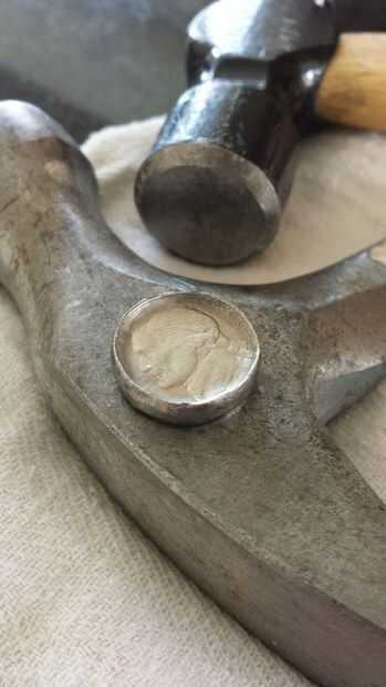 crear su propio anillo usando nada más que un níquel del búfalo, un martillo y un montón de paciencia y tiempo! Níqueles del búfalo son agradables ya que parecen ser un poco más maleable que los níqueles generalmente que encontrará hoy en día.La prem