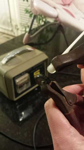 Una vez que la reacción ha hecho su trabajo, desenchufe el cargador y luego desconectar los conectores de la moneda y q-Tip. No hay que subestimar nunca la electricidad.