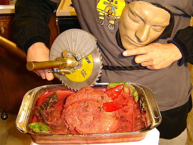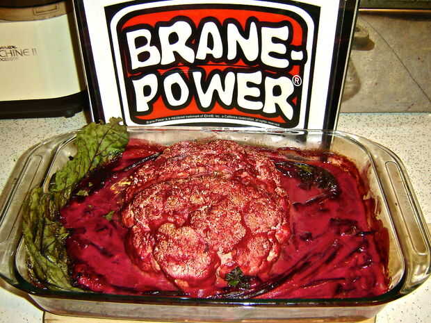 Se trata de un encantador al diablo del cerebro en salsa sangre... estilo vegetariano, por supuesto!