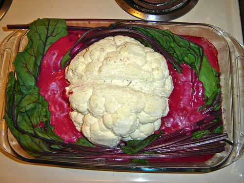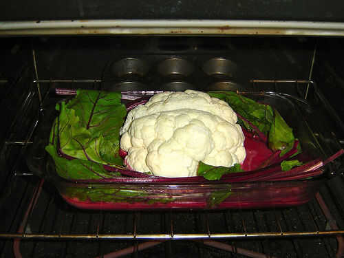 Recorte todo verdes brotes y hojas de la coliflor, luego corte el fondo de la misma con un cuchillo grande. Utilizar un cuchillo pequeño para cortar un surco en forma de V de la parte delantera a la parte posterior de la coliflor "cerebro". Esto simula la brecha entre los hemisferios izquierdos y derecho del cerebro. Recortar la ranura del cerebro por lo que es más redondeado y cerebro-como.