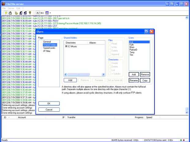 3. después de agregar los usuarios debe agregar una carpeta compartida, que se encuentra justo al lado de la caja de los usuarios. Esta parte es simple, sólo tienes que buscar para lo que quieras compartir... y compartirlo. Asegúrese de que lo que desea compartir se define como el directorio de inicio.
