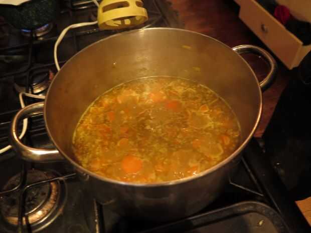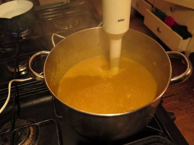 Cuadro 1. Una vez que se han cocinado las zanahorias hasta que estén suaves y son lo suficientemente suaves como ser aplastado contra el lado de la maceta con un tenedor, la sopa está lista para ser mezclado.