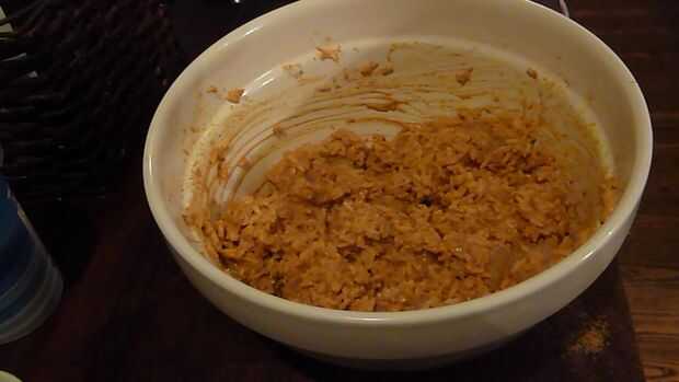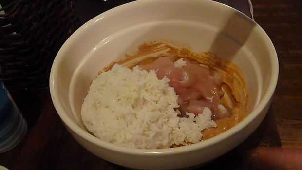 4. finalmente agregar el pollo crudo y el arroz cocido y asegurarse de que está completamente cubierto.