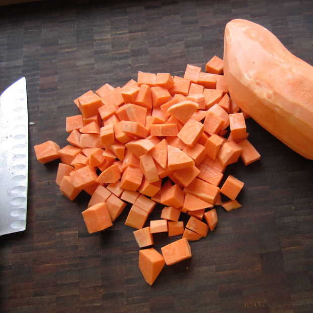 Al curry sopa de boniato con bacon (3 / 6 paso)