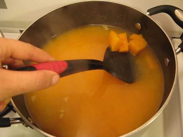 Si usa una licuadora, se mezcla la mezcla hasta que la mayor parte de la calabaza. Os dejo una cuarta parte de la calabaza tabacos porque me gusta la textura de los trozos de calabaza en la sopa final.