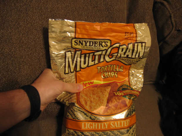 Comience apretando la mayor parte del aire de la bolsa para que la parte delantera y trasera de la bolsa están juntos y aplanado hasta los chips, o alrededores.