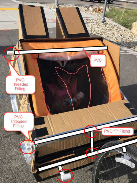 Decidí que sería mejor crear un marco de tubo de PVC. Esto da la cartulina algunos mayor integridad estructural y también permiten la Asamblea. He creado cuatro paneles: frontal, dos lados y parte posterior/techo. A ellos se unieron junto con el marco de PVC. Usé accesorios de tubería de macho y hembra que permite el montaje rápido. Mis disculpas que no tengo fotos del marco de PVC. Hice un boceto sobre el Delorean para que tengas una idea lo que parecía. El marco está por debajo de la cartulina. Si pongo este trailer bicicleta detrás juntos otra vez se edito este post para mostrar más aclaración.