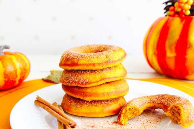 Estoy listo ciertamente para el tiempo en otoño, y estos donuts de especia de calabaza al horno, suave tienen la dulzura perfecta y llenan su cocina con un aroma cálido y reconfortante. Ellos están seguros de por favor!