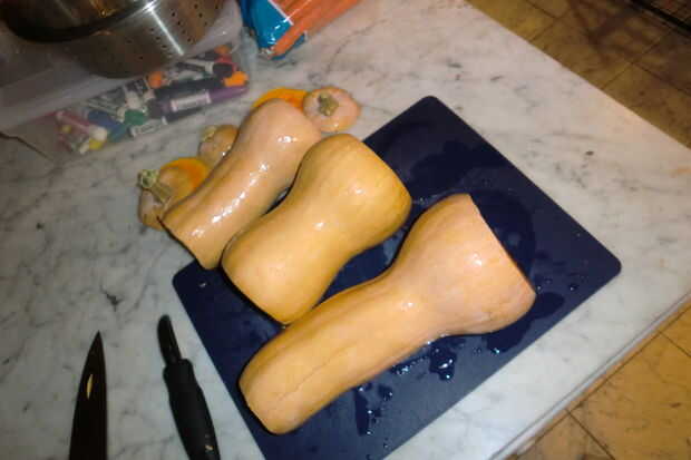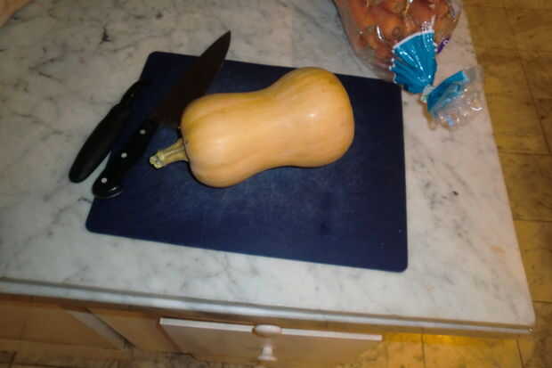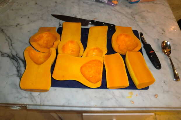Picar la calabaza en cubos de pulgada o pulgada y media.