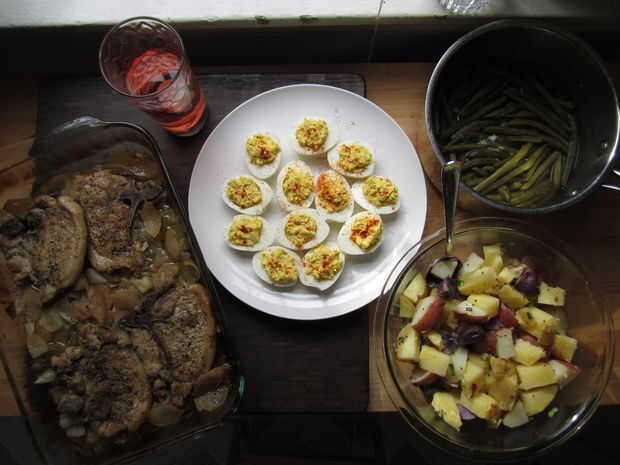 Chuletas de cerdo al horno son un gran fin de semana o cena navideña - toman un poco de tiempo para cocinar, pero lo valen. Esperar hornear aproximadamente una hora mínima, pero ya es excelente si tienes el tiempo!