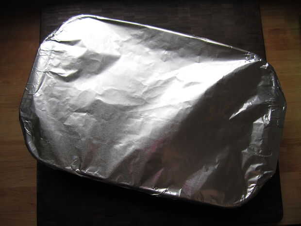 Se va hoja - cubierta de una capa es lo suficientemente bueno! ¿Dejarlo hornear a 350 por media hora mientras prepara algunos lados, tal vez?