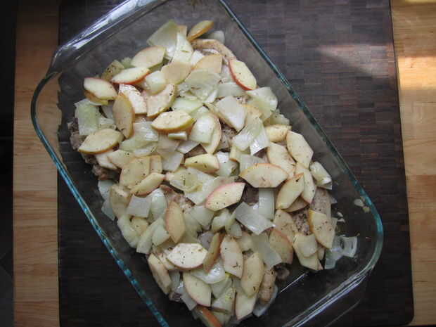 Se trata de una combinación de una receta que he usado desde hace tiempo del cocinero de ilustrada (julio el agosto de 2002, pág. 6), combinado con una receta que vi en un periódico local hace algún tiempo (aportando la sidra simmering aspecto) y alg