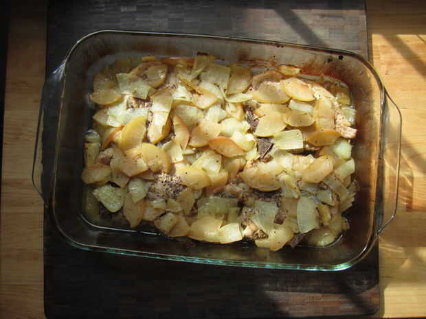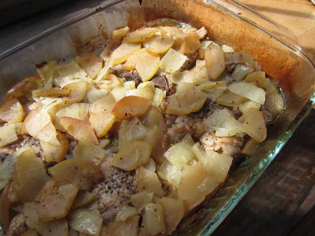 Se trata de una combinación de una receta que he usado desde hace tiempo del cocinero de ilustrada (julio el agosto de 2002, pág. 6), combinado con una receta que vi en un periódico local hace algún tiempo (aportando la sidra simmering aspecto) y alg
