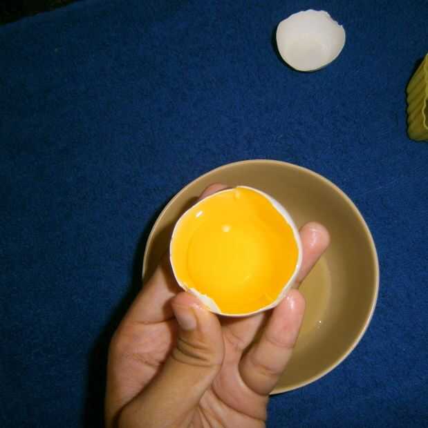 Separar la yema de huevo y blanco cuidadosamente.