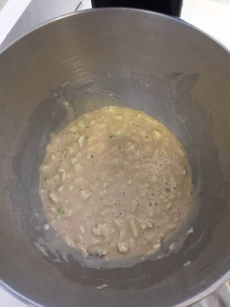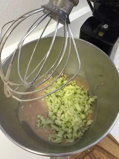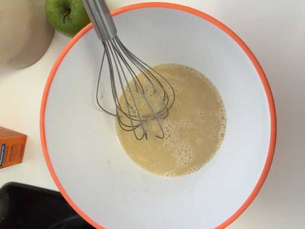 En otro recipiente combinar los ingredientes húmedos, excepto la manzana.