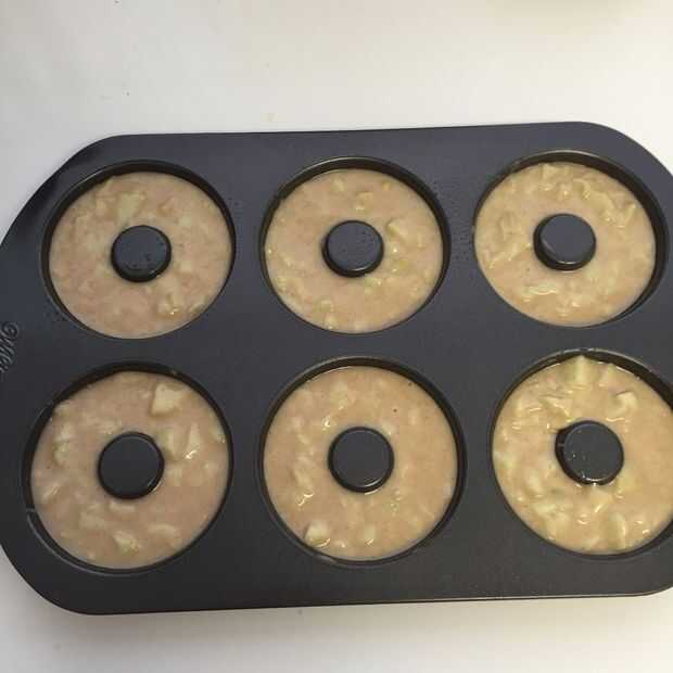 Engrasar su molde de Donut y vierta su mezcla en llenar cada bolsillo casi al comienzo pero, no bastante. 3/4 de lo completo.