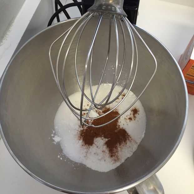 Vierta la mezcla de ingredientes húmedos en el seco y batir con una eléctrica mezcla hasta combinar.