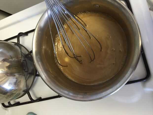 Revolver constantemente con un batidor de alambre durante unos 5 minutos. La salsa comenzará a burbujear.