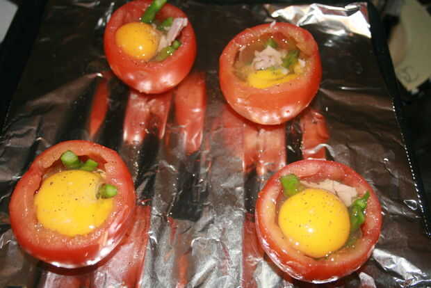 aquí es una buena manera de espárrago.3 - 4 huevos (dependiendo del tamaño de la bandeja)3-4 cucharadas leche1 manojo de espárragos frescos1 puerro pequeño cortado1 pequeña cebolla de Tropea (o un par de cebollas) en rodajaspanceta 100 g de cubitos d