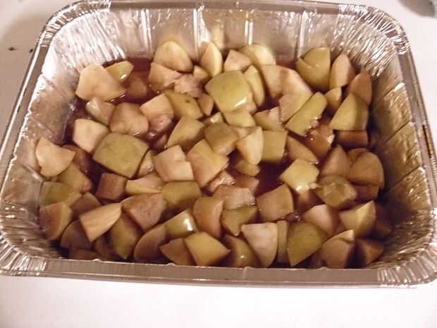 cocer las manzanas durante 1 hora y 15 minutos o hasta que estén suaves a 350 grados
