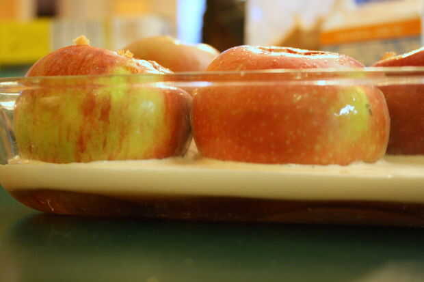 Espolvorear una pizca de sal sobre la parte superior de la manzana y una pizca o dos de tus especias favoritas si quieres. Tiendo a utilizar pimienta o canela.