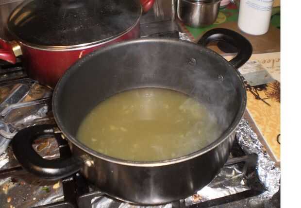 Vierta las cebollas en la Crockpot. Bastante sencillo ¿verdad? Bien, para obtener el resto del sabor, me decidí a Desglasar la sartén otra vez (tal vez quería limpiar con caldo...) con caldo de res y que los lados estén limpios (todos los sabores y cebollas deben ahora ser sumergidos en el caldo de carne). Limpiar los utensilios con caldo y volcado en la olla.