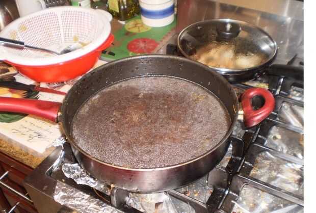 Usted puede cualquiera hacer la forma tradicional, que consiste en 45 minutos de revolver manualmente las cebollas a fuego alto, o se puede hacer el método cocinero ilustrado de caramelizar la cebolla (aquí es una buena ilustración: [Enlace aquí ]. Para el contenedor, puede utilizar un horno holandés (recomendado) o puede usar una olla a 400 grados (Recuerde caramelización ocurre a 410 grados!). Lo hice al modo tradicional y participan 45 minutos de efecto sobre la cebolla, poco a poco!