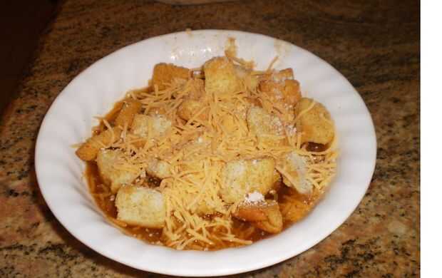 -Asar a la parrilla. (no es necesario asar como el calor de la sopa de todos modos naturalmente derrita el queso)