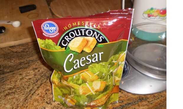 Tiro algunos crutones en. (Recipiente nunca ir rancio... causa que ya son obsoletos. Si era mi