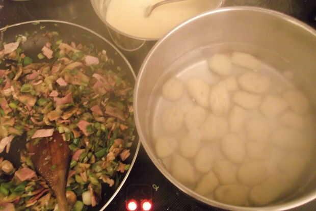 ¿al horno ñoquis caseros con jamón, puerro, champiñón y queso (2 / 6 paso)