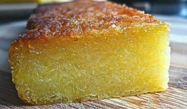 El pastel de yuca (tapioca) es semi suave y húmeda con una textura elástica, elástica. La parte superior caramelizada y los bordes de la torta de tapioca, después se cuece al horno le dan un sabor tan especial y acogedor.