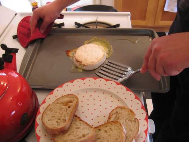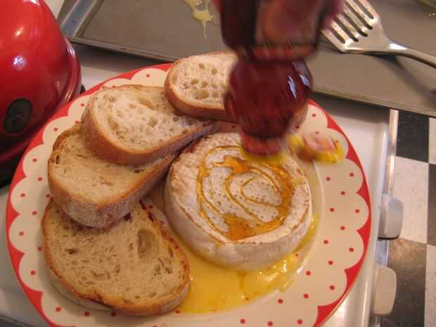 Inicio la brie con miel, almendras, mermelada o sus propios favoritos ingredientes y servir rápidamente. Creo que dulce y sabores salados.