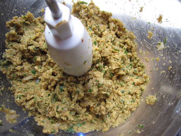 Usted querrá pulso, raspar hacia abajo los lados hasta que todo es finamente procesado y combinado, pero no puré. Si tienes problemas de conseguir que se unan, agregar un poquito de aceite de oliva para comenzarla.